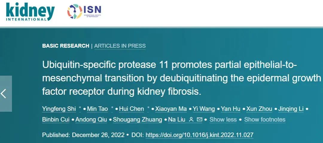附属东方医院刘娜团队发现肾纤维化的潜在治疗靶点,相关研究成果发表于《国际肾脏期刊》