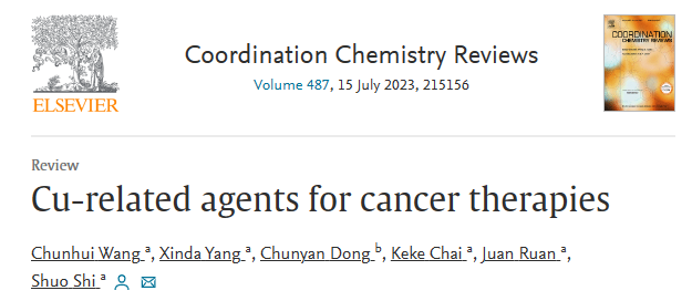 化学科学与工程学院石硕课题组系统综述铜相关试剂在癌症治疗中的应用,相关成果发表于《配位化学综述》