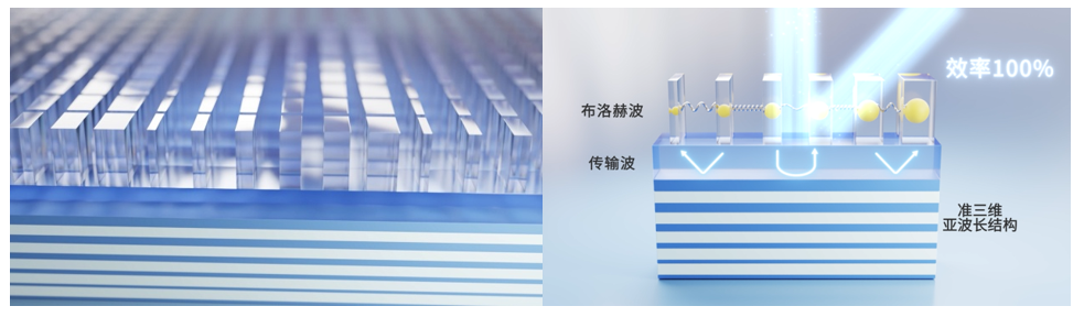 研究团队提出了一维多层膜结合二维超表面的准三维亚波长新结构,通过传输波和布洛赫波的高效耦合增强非局域能流调控能力,首次实现了效率优于99%的光频异常反射。该成果以“Perfect anomalous reflectors at optical frequencies”为题发表于期刊Science Advances。