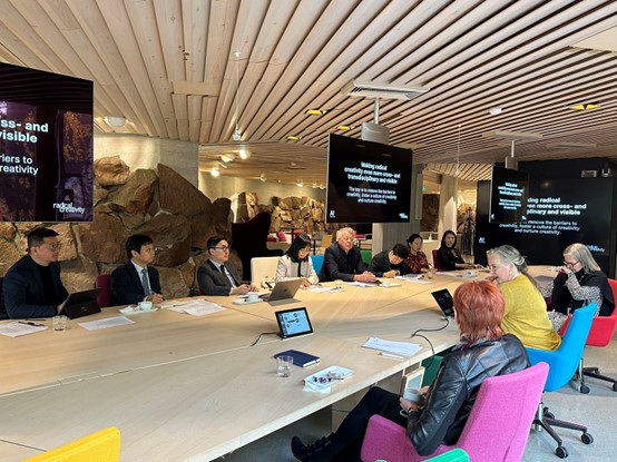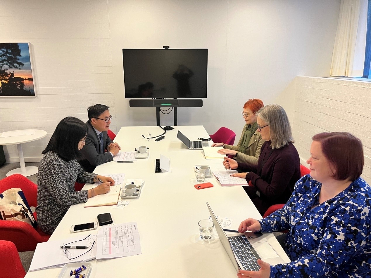 代表团与阿尔托大学国际处负责人进行工作会谈,商讨落实两校续签校际合作协议,建立合作伙伴关系15周年和上海国际设计创新学院成立10周年系列纪念活动,如联合举办国际会议、学生交流、举办展览、合作发表论文、开展博士生双学位项目、联合开展暑期学校、重启教学法培训等合作事宜。