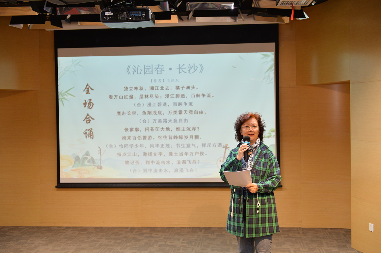 本次诵读活动的获奖选手也依次为大家带来《就义前给儿子的遗书》《岳阳楼记》《蜀道难》等经典诗词诵读表演。现场观众在选手们饱含深情的诵读中,感受祖国的壮丽山河,唤起家乡文脉记忆,从语言和文字中增进中华传统优秀文化的认同感。活动最后,赵静老师带领大家一同诵读《沁园春·长沙》,感受中华文化的博大精深。