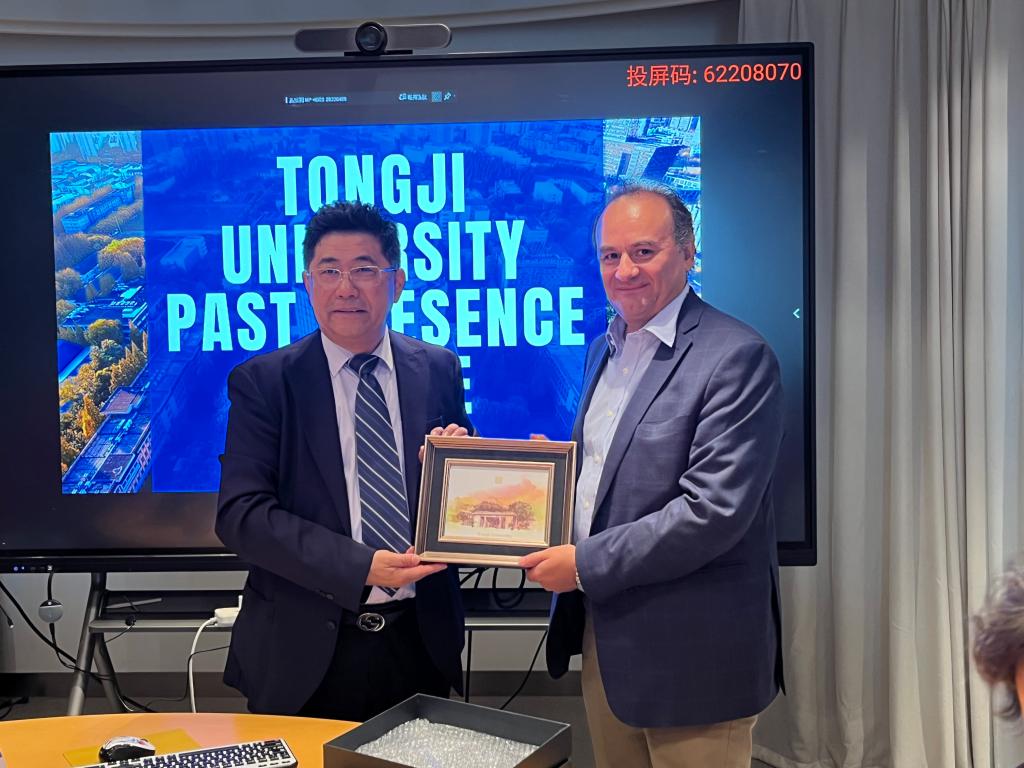 吕培明对克里斯蒂安·冈萨雷斯-比亚特一行来访表示热烈欢迎。他表示,同济大学在学科发展上有着显著的优势与特色,尤其注重建设人工智能驱动的智慧可持续发展校园,并长期依托中西学院关注拉美国家和地区的发展,高度重视人才培养,智利大学设有20余个卓越中心,涵盖各个学科,着力开展跨学科研究,在教学和研究领域,智利大学开展的科学和技术研究约占智利全国总数的30%,希望双方在土木、建筑、环境、医学等领域加强互动,积极推动开展师生交流与合作。