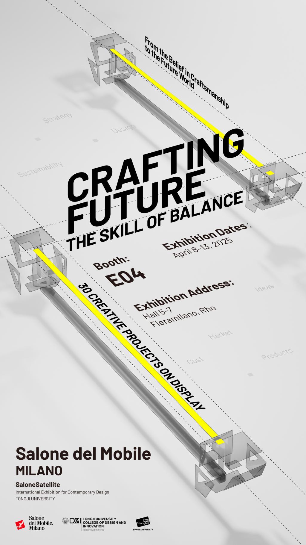 本次展览由同济大学主办,设计创意学院承办,张周捷教授与张黎教授联合策展,希望借助“Crafting Future——The Skill of Balance”(匠心未来——平衡之道)的主题,充分展现同济大学设计创意学院“立体T型”教育框架的时代意义,特别关注创意项目中的可持续性、创新与价值的平衡,探索如何通过设计在复杂多变的社会中实现这一全新的平衡能力。