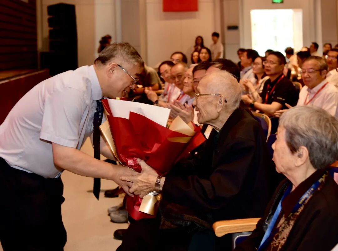 一代代同济海洋人接力奋斗,续写荣光。会上,翦知湣代表学院师生向年逾八旬仍心系学科发展、继续发光发热的退休老师们献上鲜花,表达由衷的敬意与感谢。