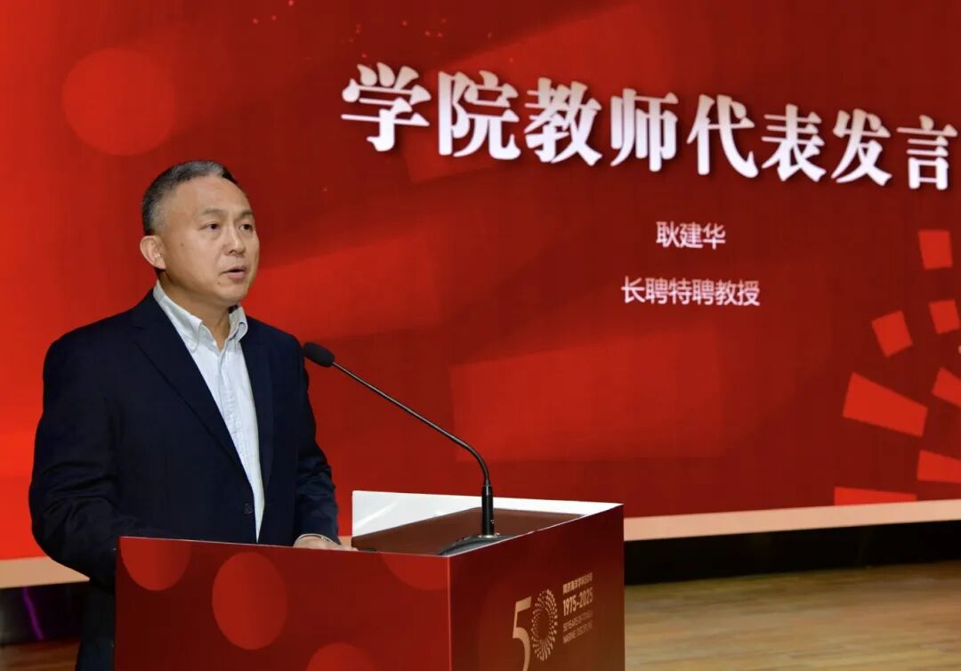 耿建华教授作为教师代表发言表示,将坚守育人初心,薪火相传,培养更多海洋事业接班人;继续勇攀科学高峰,产出更多引领性的重大成果;传承“同舟共济、钩深致远”的海洋文化,共同努力把学院建设成为特色鲜明、世界一流的海洋与地球科学人才培养和科学研究中心。