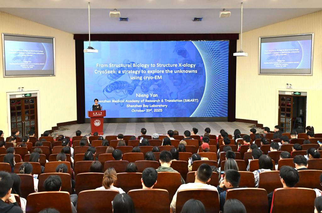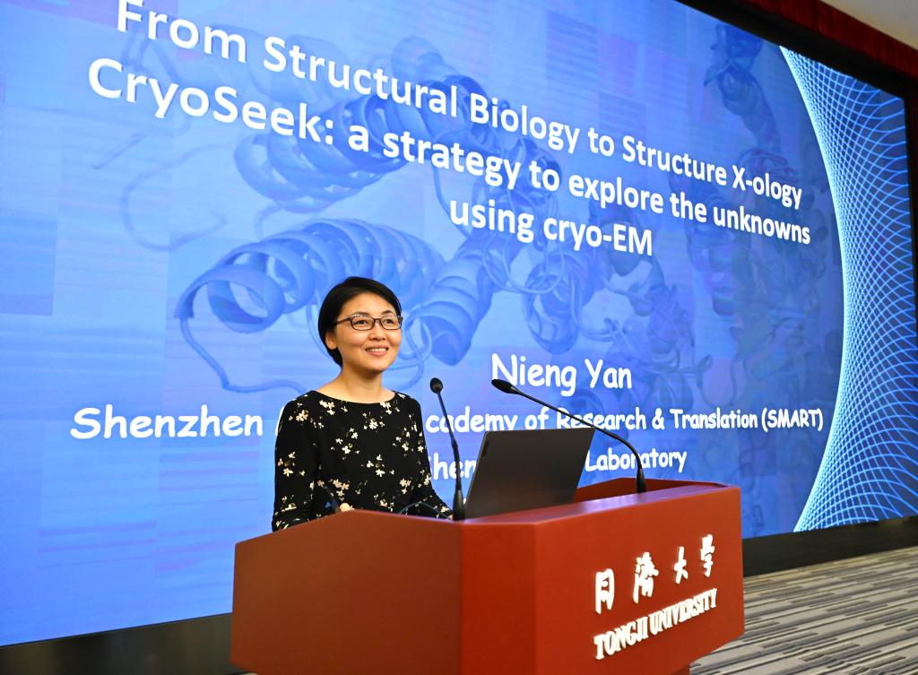 10月31日下午,深圳医学科学院院长、深圳湾实验室主任颜宁应邀莅临同济大学高等讲堂,为350余名同济师生带来了一场题为“CryoSeek:A structure-first paradigm for biological discovery”的学术讲座。现场座无虚席,气氛热烈,受到广大师生的热烈欢迎。