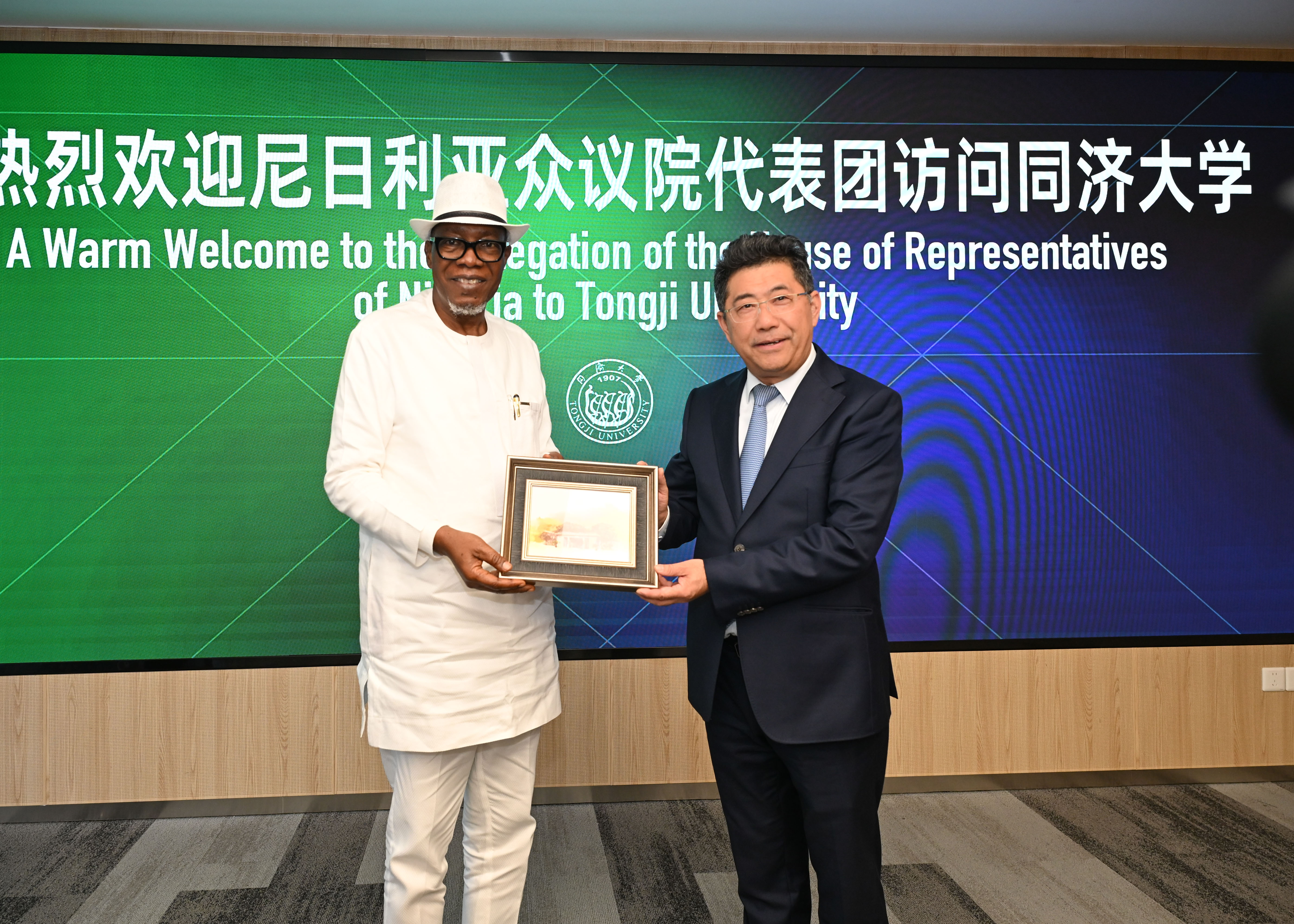 会谈中,吕培明系统介绍了同济大学的国际化发展现状。同济大学自建立以来就带有国际合作的基因,目前学校已与全球330所高校建立合作关系,此外还与联合国环境规划署、联合国人居署、联合国教科文组织和联合国开发计划署等国际组织保持密切合作关系,学校现有19名尼日利亚籍学生,其中约90%获得中国政府奖学金支持,展现了中尼教育合作的扎实基础。朱利叶斯·伊冯贝雷表示,尼日利亚正积极推动教育改革,迫切需要借鉴中国在高等教育与科技创新领域的成功实践,期待与同济大学在师生交流、科研合作及课程共建方面取得实质性成果,共同培养应对全球挑战的卓越人才。双方达成多项合作共识,将共同推进师生互访与联合暑期学校,鼓励尼日利亚优秀师生到同济开展科研交流。吕培明特别邀请朱利叶斯·伊冯贝雷推荐尼日利亚优质高校,双方合作共建海外招生基地、孔子学院等,进一步拓宽合作渠道。他向朱利叶斯·伊冯贝雷赠送了同济大学校门画作,象征学校始终向尼日利亚及全球合作伙伴敞开合作之门。