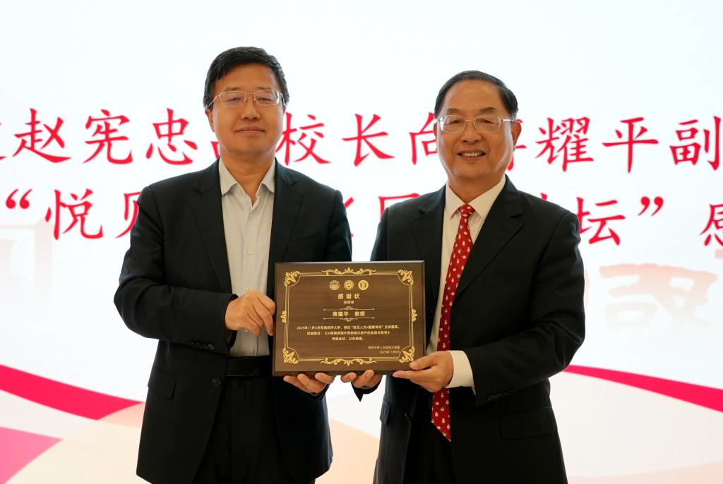 11月6日,同济大学人文社科大讲堂“国豪讲坛”第十场报告开讲。商务部原副部长、信息产业部原副部长蒋耀平以《AI赋能我国外贸数智化跃升的实践与思考》为题,为现场师生带来精彩报告。副校长赵宪忠向蒋耀平赠送“悦见人文×国豪讲坛”感谢状。政治与国际关系学院、文科建设处负责人等参加活动。