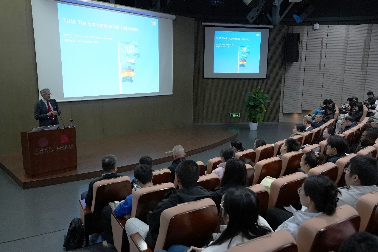在土木工程学院,赫尔曼教授作了题为《国际化、跨学科、创业型:慕尼黑工业大学作为欧洲典范》的精彩讲座,系统阐述了慕尼黑工业大学以国际化、跨学科、创业型为特色,成长为欧洲高等教育典范的成功实践。讲座吸引了260多名师生到场聆听,现场反响热烈。