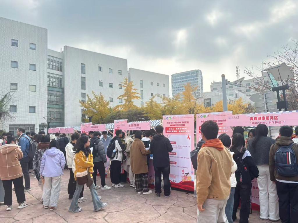 在第38个“世界艾滋病日”,为深化校园艾滋病防治知识普及,倡导科学健康生活理念,校医院、校红十字会联合杨浦区疾病预防控制中心、沪东派出所、杨浦区卫生健康促进中心等多家单位,于12月1日中午在宝隆广场举办“科学防艾筑防线,青春健康向未来”主题宣教活动,吸引超500名师生踊跃参与。常务副校长吕培明等亲临活动现场指导,对多部门协同宣教创新模式及显著成效给予充分肯定。