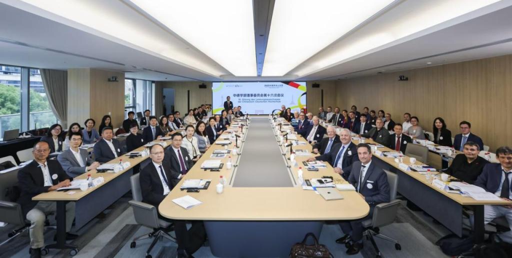 一系列战略会议与学术论坛,聚焦科技与人文的融合,探讨了人工智能背景下的中德高等教育合作,强调中德在应对共同挑战中的互补优势。10月,中德学部理事委员会第十六次会议、中德学院咨询委员会第二十七次会议、第三届中德联合科研学术创新会议等重要会议召开,展示了双方在产学研用合作中的成功实践,为未来中德合作提供了新思路。中国教育部国际合作与交流司二级巡视员席茹、中国外交部欧洲司参赞王玮、国家留学基金委副秘书长田露露、中国科技部国际合作司一级调研员李刚、副主席兼德国学术交流中心秘书长凯·西克斯(Kai Sicks)、德国联邦研究技术与航天部国际事务司副司长马内尔(Frithjof A. Maennel)、德国驻沪总领事馆科教领事孔有为(Uwe Koch)、德国布伦瑞克工业大学校长伊特尔(Angela Ittel)、柏林工业大学校长特使贝伦特(Frank Behrendt)、德国应用科学大学国际合作联合会总协调员奥特(Hans Wilhelm Orth)等出席会议。校党委书记郑庆华、校长杨金龙和副校长李翔宁等出席会议。