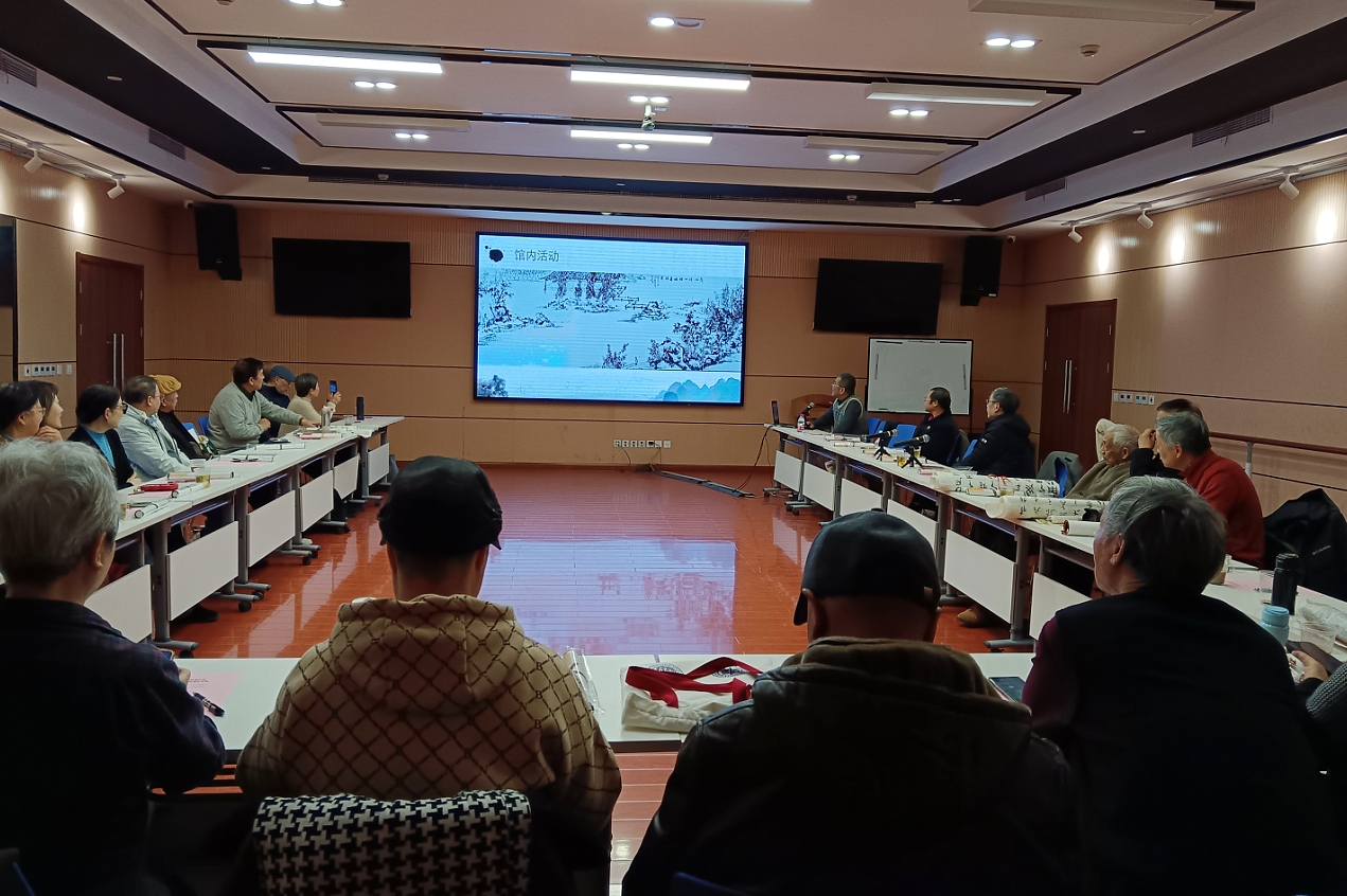 随后,大家一起讨论了2026年茂林修竹馆成立十周年纪念活动,从选题、形式、规格、题款等方面交换了意见,并对学校120周年校庆的书画活动进行筹划。在传统书画临习活动交流中,老师们分享了近期实临、背临、临创的作业,江理平、严万翔、蒋荻、范秉寅等理事纷纷作了点评和解析,提出中肯意见和建议。