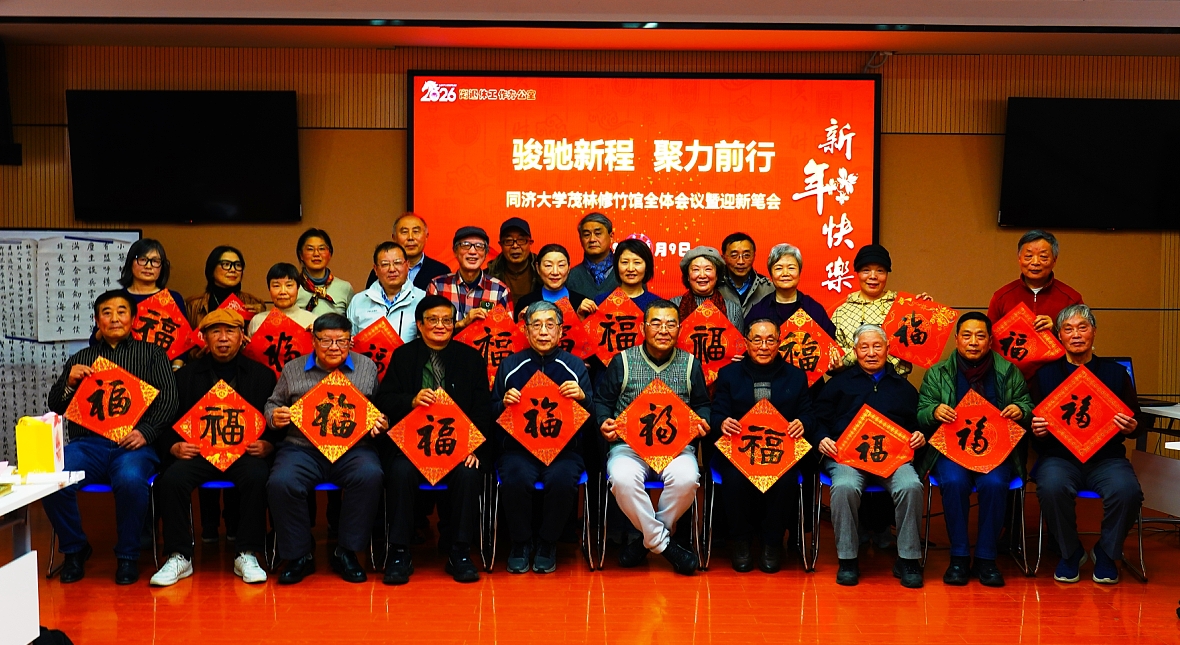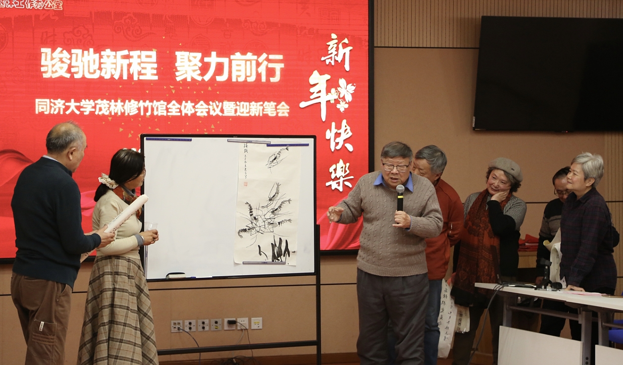 1月9日,同济大学茂林修竹馆(同济大学退休教职工书画协会)在同济新村老年活动中心举行全体会议暨迎新笔会。同济大学原副校长金正基手书祥“福”,与离退休工作办公室负责人一起,为老同志们献上新年的祝福。