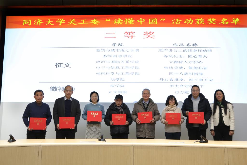 会议对2025年度“读懂中国”活动获奖的18个学院进行表彰。其中,同济大学上报教育部关工委的8项作品有6项获奖:土木工程学院《数字化的执牛耳者》获最佳征文,建筑与城市规划学院《古城卫士》获最佳微视频,医学院《蓝盔下的生命卫士》、测绘与地理信息学院《大地的见证》、生命科学与技术学院《电镜映照赤子心》获优秀征文,电子与信息工程学院《驾驭新能源》获优秀微视频。同济大学获奖数在全国高校中名列前茅,校关工委也再次获得优秀组织奖。与会者们现场观摩了《古城卫士》微视频。