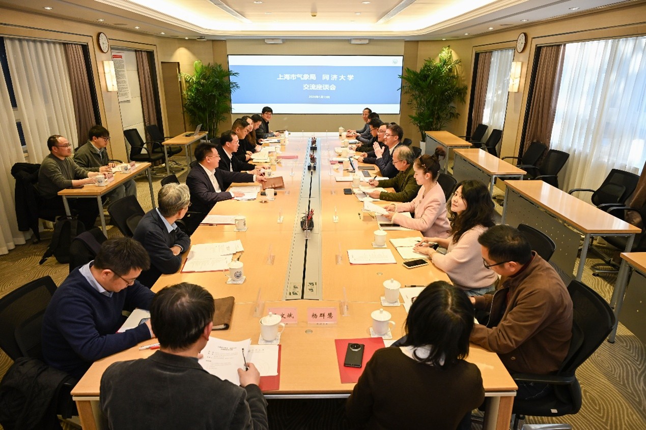 1月15日,上海市气象局局长冯磊、副局长雷小途一行来校调研并召开交流座谈会。同济大学党委书记、中国工程院院士郑庆华,副校长李翔宁,相关部门、学院负责人参会。双方围绕深化气象领域产学研合作、共建MAZU全球数据创新大赛等核心议题展开深入交流。