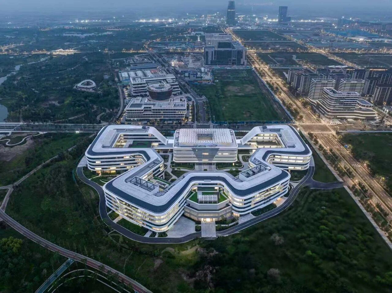 2024年10月14日,同济设计院主持设计的中国星网雄安总部办公楼全面迁驻雄安新区,成为入驻新区的首家疏解北京非首都功能的央企总部。其建筑设计以“星耀华夏,花绽雄安”为设计概念,采用四个花瓣绽放的造型,代表雄安绿谷的生态之花、代表卫星互联网的科技之花和代表中国文化的建筑之花融为一体。
