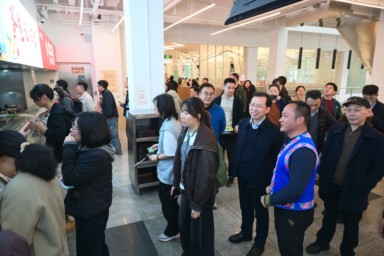 3月30日,学校在学苑饮食广场新增设云龙米线饮食窗口。当天中午,校党委书记郑庆华来到这一特色专窗,了解供餐情况和师生反响。
