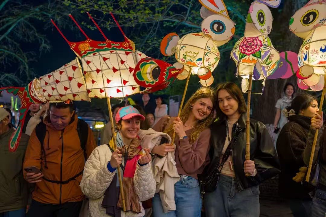 黟县宏村作为世界文化遗产,向来有“中国画里乡村”的美誉。漫步于粉墙黛瓦的徽派古建之间,精巧的木雕与马头墙勾勒出江南水墨画卷,体现了徽州人特有的建筑智慧。傍晚,学生们亲自体验了热闹的“闹花灯”非遗活动,跟随鱼灯表演队,手举流光溢彩的花灯,穿梭于青石板古巷之中。他们与沿途观赏的游客热情互动,聆听“鱼灯”所承载的祈福纳祥文化寓意,在行走中感知徽州深厚的文化底蕴。