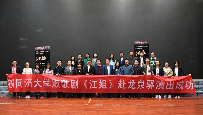 同济大学版歌剧《江姐》于今年6月16日在校内首演。此次到江姐的家乡四川巡演是首次走出学校,走出上海。除个别演员为老师外,参加演出的均为同济大学学生,充分展现了当代青年学子对“红岩精神”的诠释和理解。由于在上海参加首演的部分学生已毕业,为了准备好赴川巡演,学校专门又招收了部分角色的演员。为了保证演出质量,演员们利用业余时间抓紧排练,相关的唱段唱过200多遍。首演取得了圆满成功。演出结束时,观众全体起立鼓掌,感谢同济大学师生带来的精彩表演。