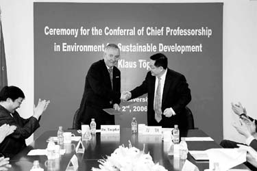 前联合国秘书长、环境规划署主任托普弗先生受聘同济大学首席教授
