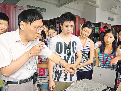 同济大学图书馆副馆长亲自向营员介绍馆藏中国古籍。 |