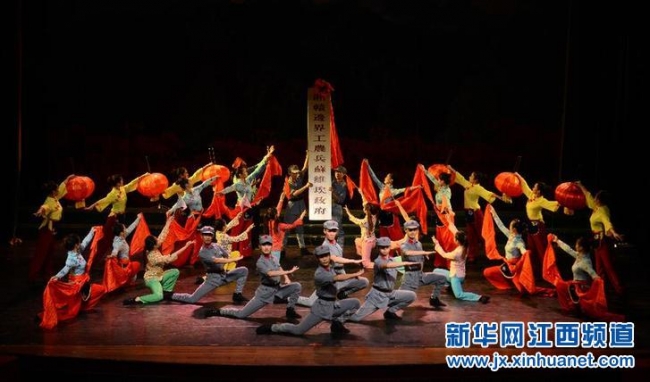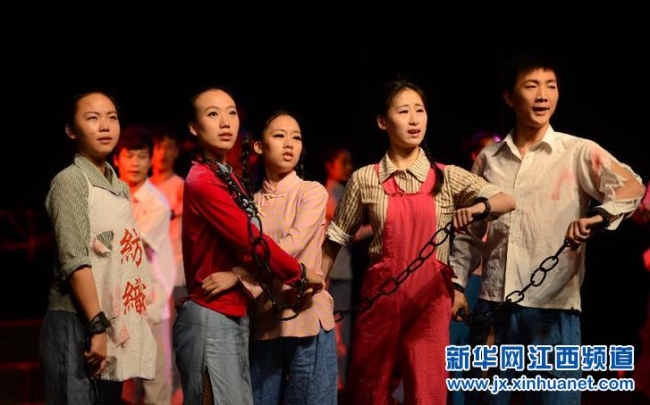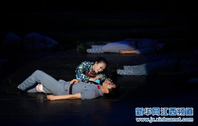 井冈山大学在校大学生表演音乐舞蹈史诗《井冈山》(5月22日摄)。音乐舞蹈史诗《井冈山》由中国井冈山干部学院、同济大学和井冈山大学联合创编,井冈山大学在校大学生演出。节目以教学演出的方式再现井冈山革命史,弘扬伟大的井冈山精神,成为对广大群众进行理想信念教育的鲜活教材。自2006年3月以来,该剧已先后演出154场,观众超过10万人次。新华社记者周科摄 http://www.jx.xinhuanet.com/news/tsxw/2014-05/26/c_1110858446_2.htm