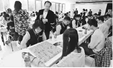 “嘉弘杯”首届上海名校象棋比赛日前在同济大学开幕。来自复旦大学、交通大学、同济大学、上海财经大学、上海外国语大学以及上海建桥大学的在校大学生选手组队参赛。 图为比赛现场 本报记者 周国强 摄影报道 http://xmwb.xinmin.cn/xmwb/html/2014-11/18/content_23_6.htm