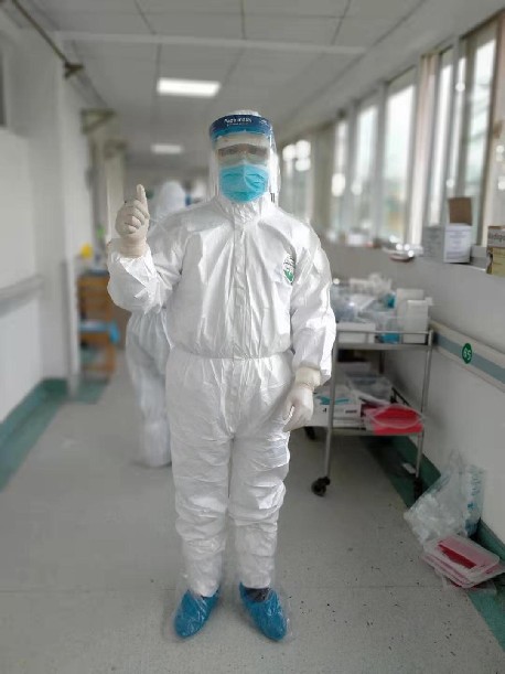 程克斌医生在武汉金银潭医院身着防护服准备查房