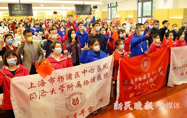 走过红毯,区领导向英雄们献上鲜花,表示深深的敬意与感谢。区委书记谢坚钢动情地说:“曾经你们是我们最大的牵挂,现在你们是我们最大的骄傲。”在随后的表彰仪式上,区长薛侃为6名医疗队员代表颁发抗疫英雄证书。2月19日,作为上海区属中心医院唯一的整建制援鄂团队,该院派出50名医护人员前往武汉,涵盖近十个医学专科和八大护理专科。他们与上海市第一人民医院共同接管了武汉雷神山医院C3病区,直到4月6日,顺利完成前线救治任务后返回上海。在武汉,他们用坚强意志筑牢防线,用初心使命守护生命。历经47天的艰苦奋战,医疗队累计救治新冠肺炎患者59人,全部治愈出院。C3病区也因此成为雷神山医院治疗新冠肺炎的标杆病区。这一刻,所有医疗队成员心潮澎湃:逆行出征,幸不辱命!在礼仪背后,蕴藏着杨浦人最深敬意。