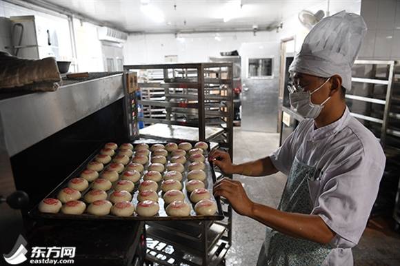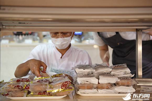记者在同济大学四平路校区的西苑食堂后厨走访时,十多位点心师正在有条不紊地制作月饼。据饮食中心西点部负责人惠明老师介绍,现在制作团队差不多从早忙到晚,“目前每天仅零售,就大约要销售近4000只月饼。我们早上6点半就要开始准备了,晚上9点甚至10点才下班”。