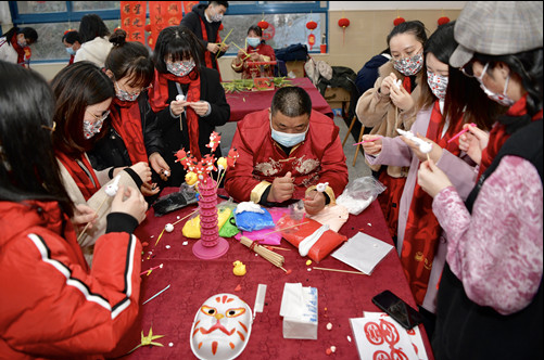 有的正泼墨挥毫,书写春联和“福”字;有的正穿针引线,制作香包;有的正手握剪刀,剪出一件件充满年味的剪纸作品……2月4日下午3时半,迎新春传统文化体验系列活动在两校区四个会场同时开场。捏面人、脸谱制作、书法、草编艺术、香包制作、剪纸艺术、中国结制作、龙凤字,留校学子在教师的指导下,饶有兴致地一一动手体验。