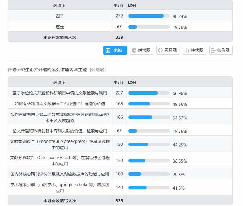 前两天发布的“针对研究生论文开题的系列讲座内容”的调查问卷,