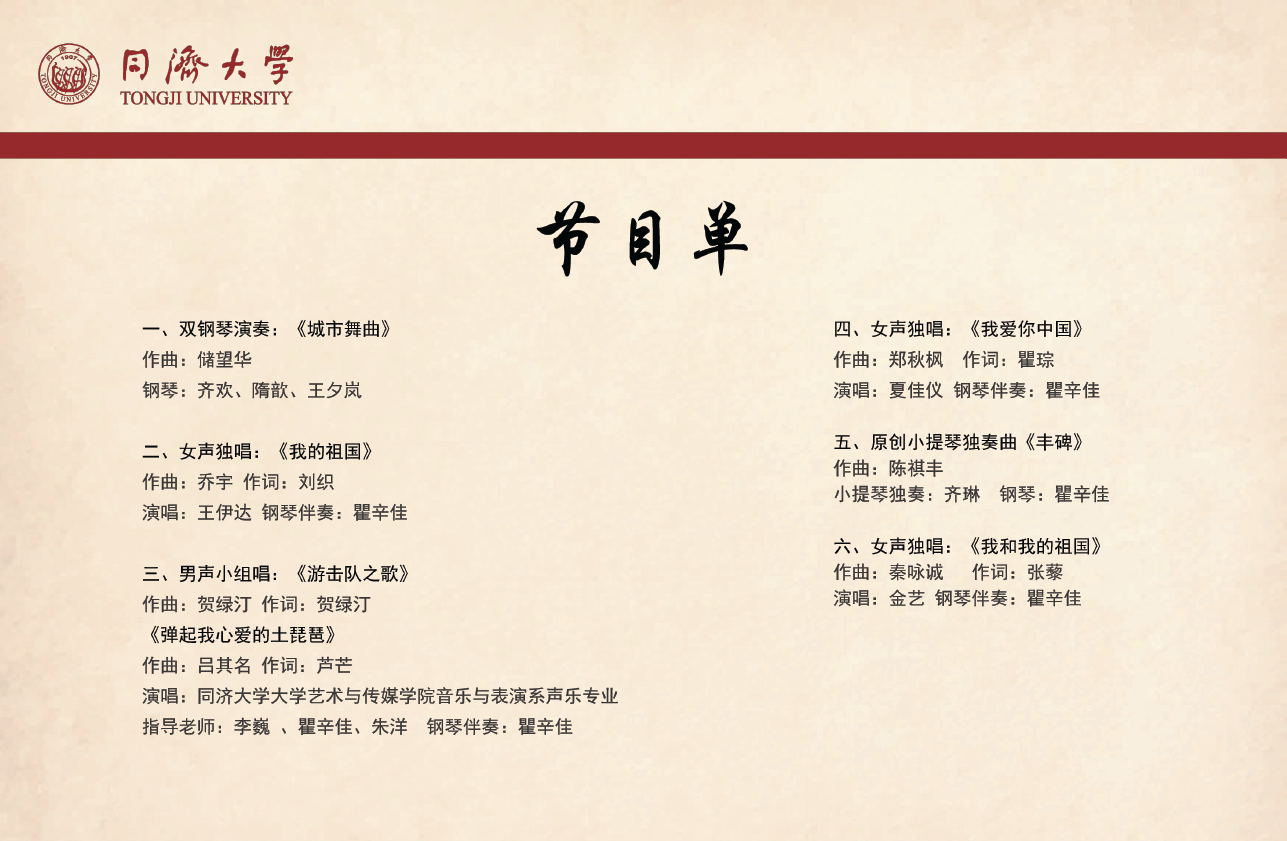 演出单位:同济大学艺术与传媒学院音乐表演专业师生及学生管弦乐团
