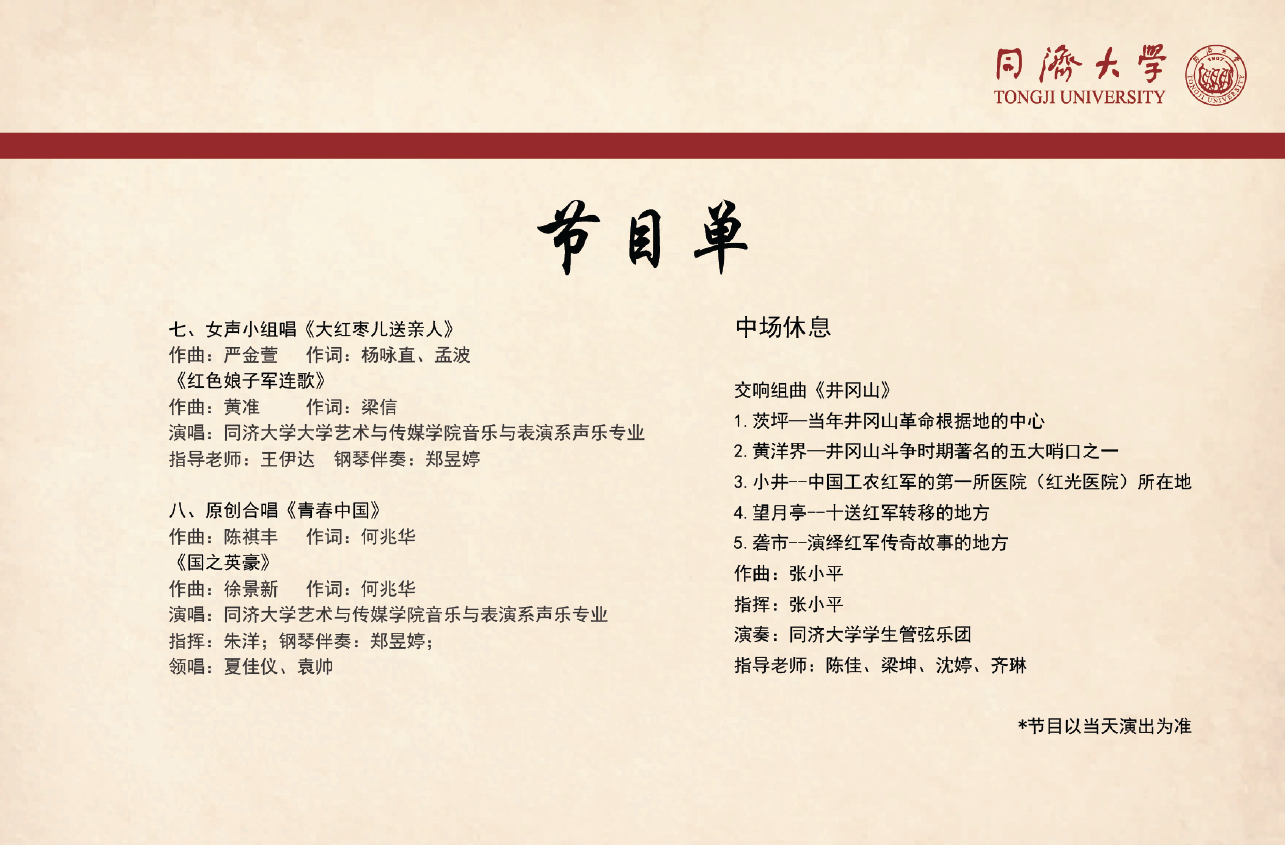 领票通知 | 2018年同济大学红色艺术教育周——“浦江启航 燎原井冈”红色音乐会