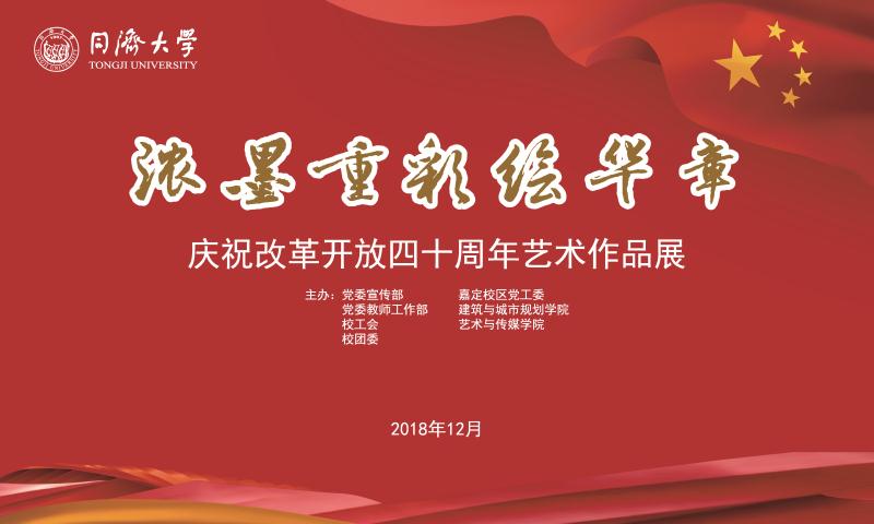 由党委宣传部、党委教师工作部等7家单位联合举办的“浓墨重彩绘华章”——庆祝改革开放40周年艺术作品展于12月21日在学校开展。该展览既是向改革开放40周年献礼,也是展示学校师生艺术文化素质。展出作品包括书法、国画、版画、篆刻、海报以及综合材料制作等近200幅作品。展览将持续至2019年1月20日,展览地点为四平路校区衷和楼大厅。