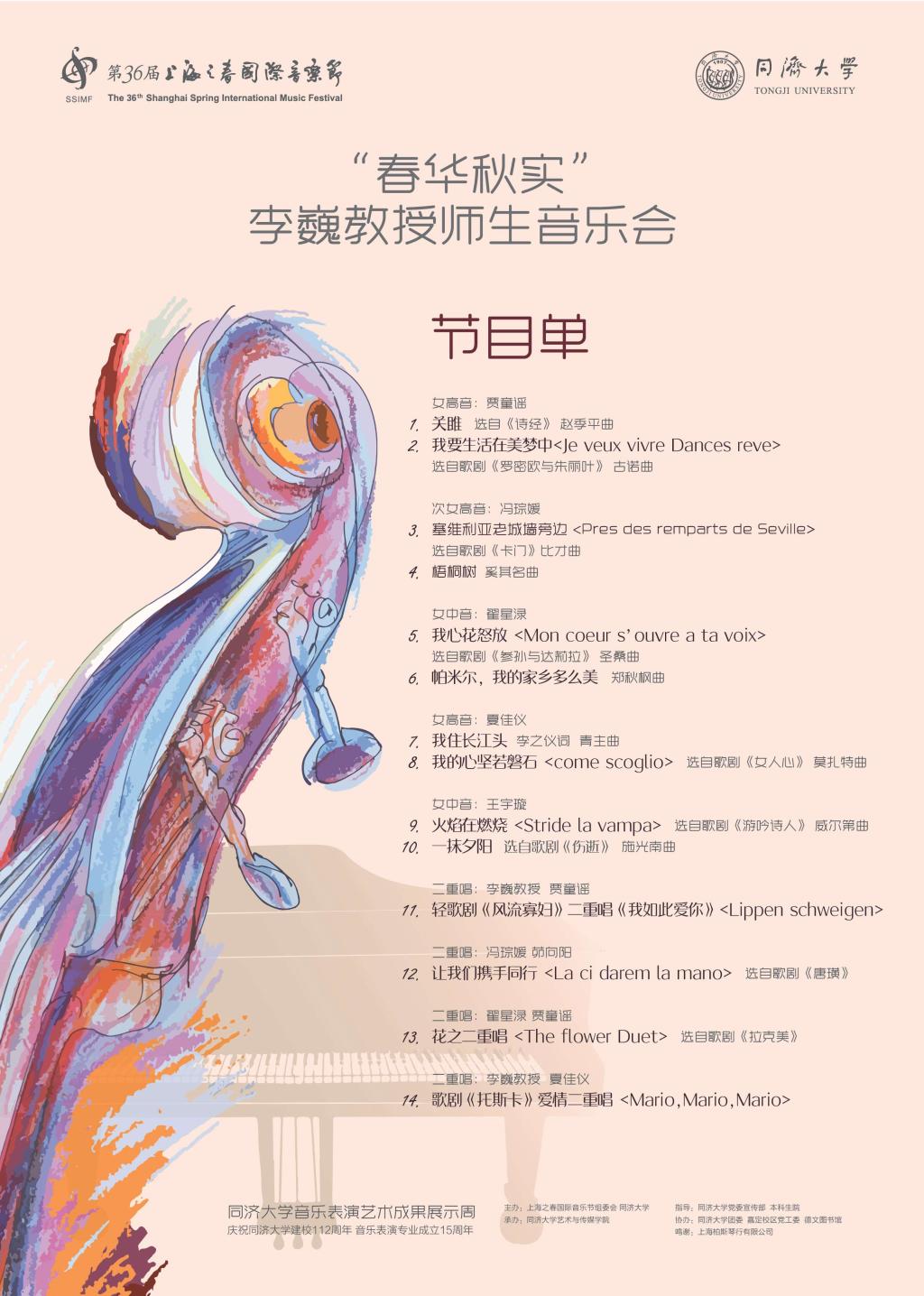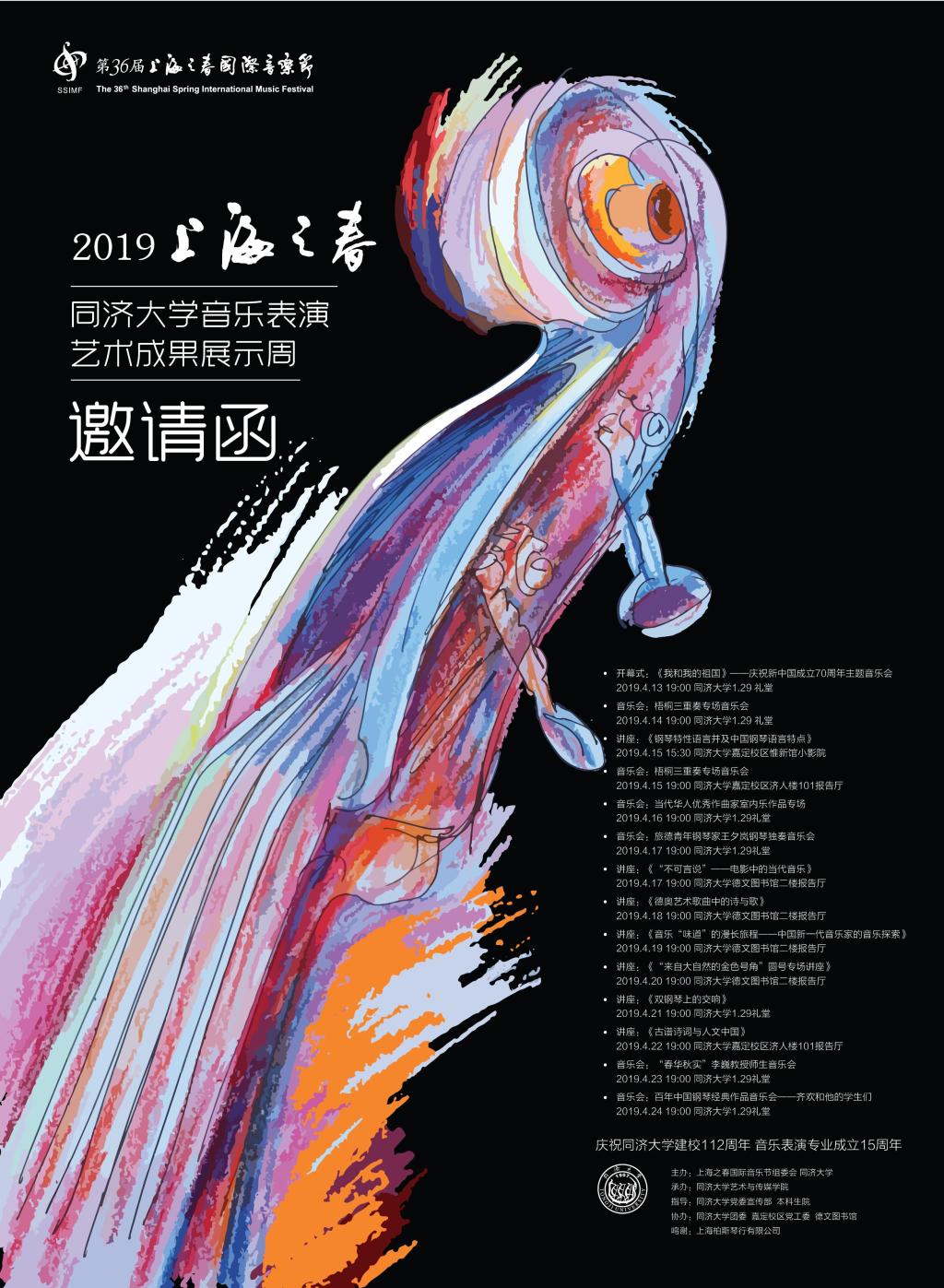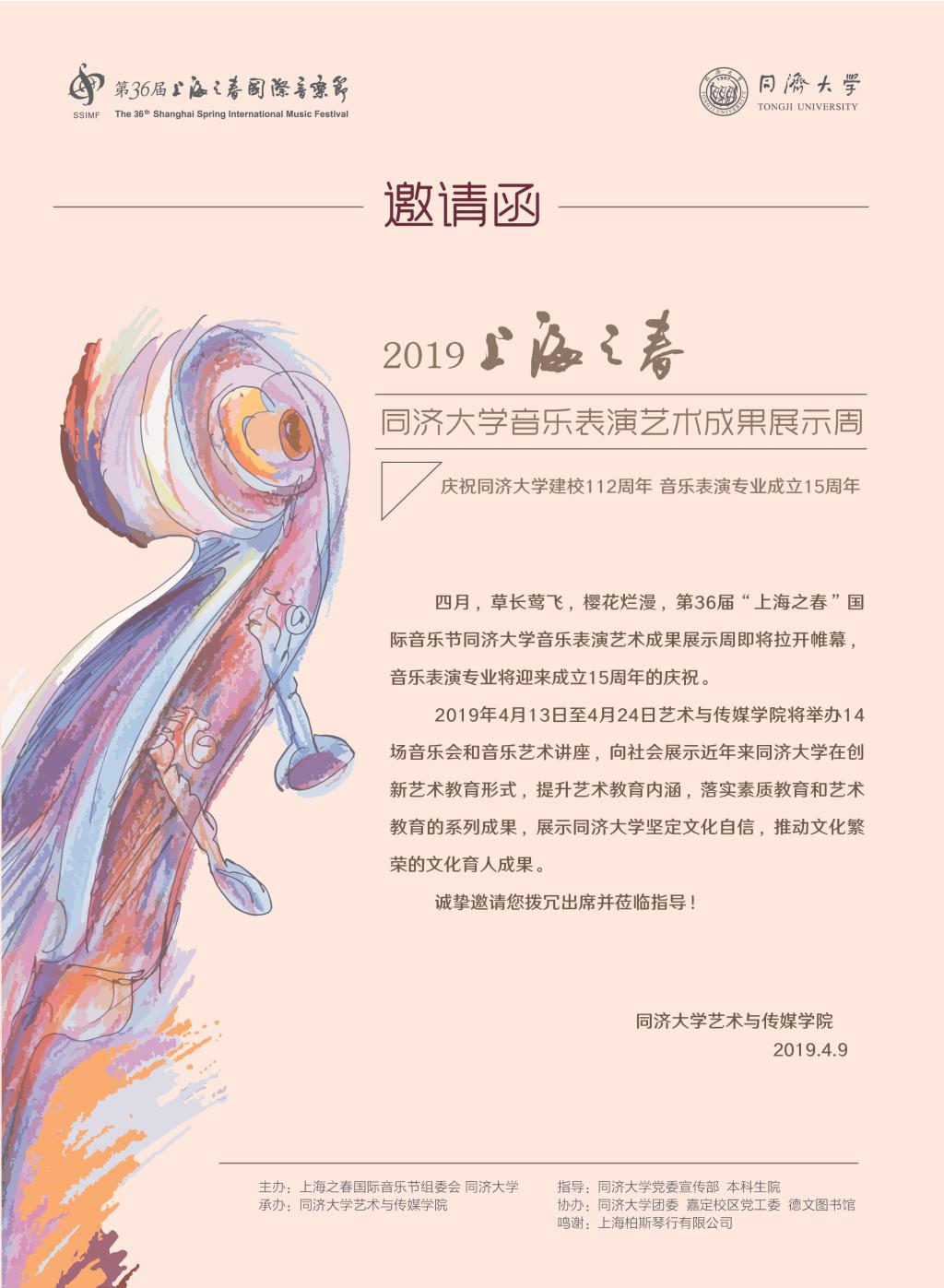 沪上春日至,华章随风起。正值新中国成立70周年、同济大学建校112周年及同济大学音乐表演专业成立15周年,第36届“上海之春”国际音乐节暨同济大学音乐表演艺术成果展示周踏春而至。