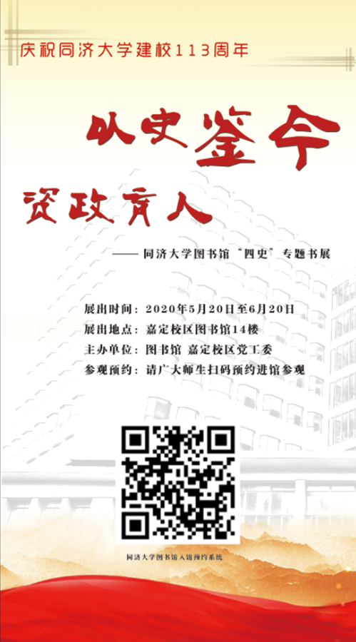 围绕学校党委四史学习教育的开展,图书馆联合嘉定校区党工委策划了 “以史鉴今 资政育人——同济大学图书馆‘四史’专题书展”,通过从图书馆馆藏中精心挑选的一百四十多册四史相关书籍,布置了一个线下阅读和线上推广相结合的“四史阅读”空间,为师生提供了党史、新中国史、改革开放史、社会主义发展史的阅读和分享平台。5月29日,我们邀请马克思主义学院李雅茹副教授为我们做四史专题书籍的导读,和您一起相约“嘉”园云阅读,走进图书中的四史。