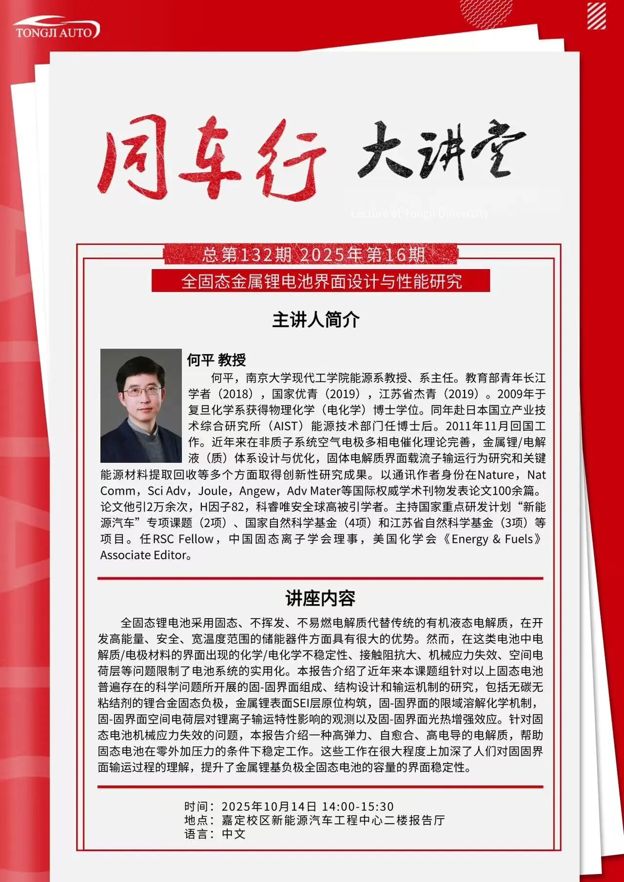 (10月14日)全固态金属锂电池界面设计与性能研究