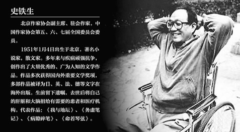 可惜他没能等到这一天。在2010年的最后一天,史铁生永远离开了他的亲人、朋友与读者们。