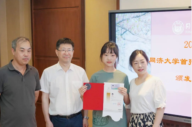 7月13日上午,同济大学党委副书记彭震伟化身“快递员”,专程赴江苏,将同济大学2023年本科生“0001号”录取通知书送达梁丰高级中学的王若渔同学。