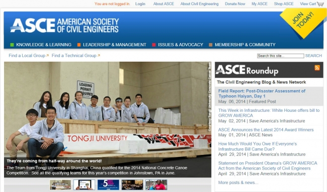 同济大学混凝土轻舟队登上ASCE官网主页封面
