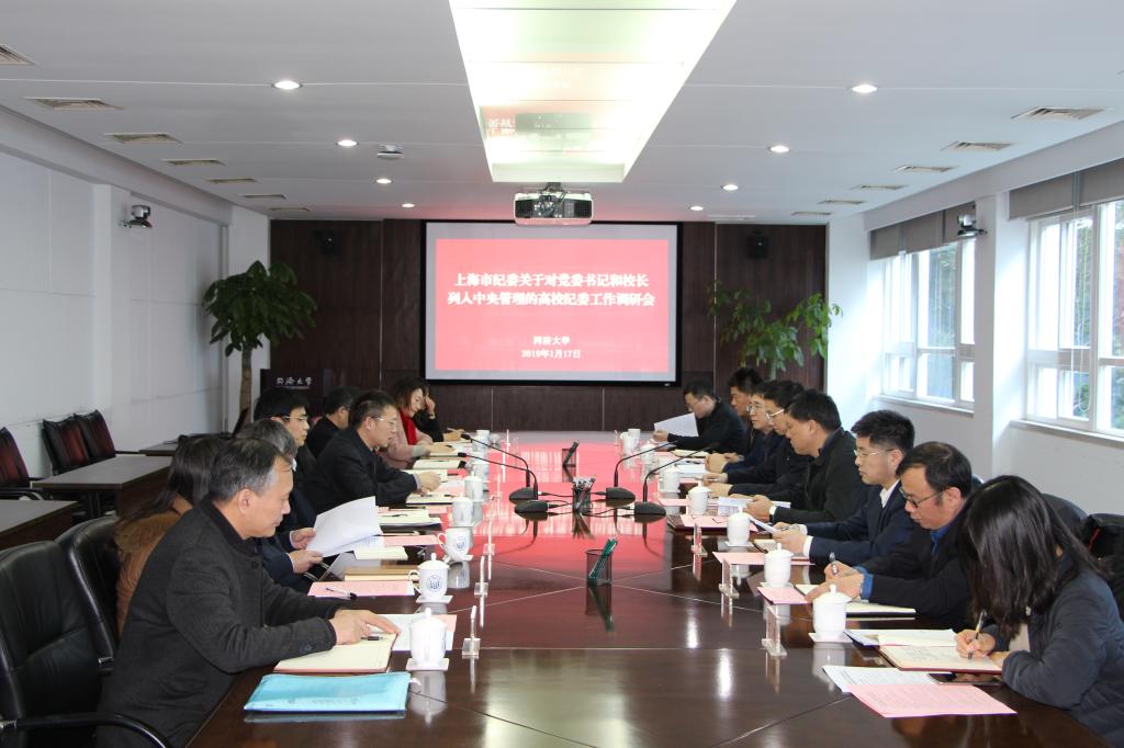 为贯彻落实中央纪委国家监委派驻机构改革的意见以及中央纪委关于党委书记和校长列入中央管理的高校纪检体制改革推进会精神,1月17日下午,上海市纪委副书记、监委副主任戴骅一行来校调研。校党委副书记、纪委书...