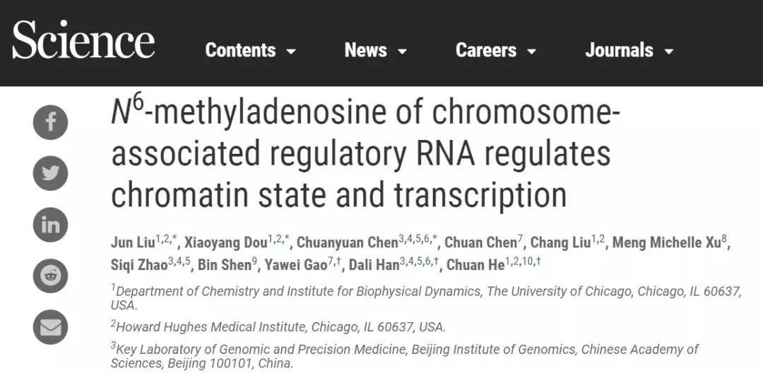 1月17日,同济大学生命科学与技术学院、附属东方医院高亚威教授联合美国芝加哥大学教授何川、中科院北京基因组研究所研究员韩大力合作完成的研究成果“N6-methyladenosine of chromosome-associated regulatory R...