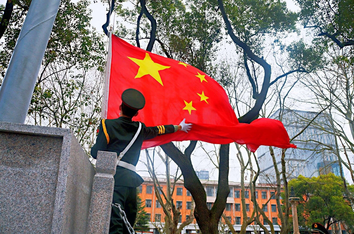 3月2日我校线上教学开课首日,由我校辅导员和留校退伍大学生组成的国旗护卫队,在四平路校区升旗台庄严升起五星红旗。校党委副书记徐建平、校团委负责同志及部分在校师生代表参加升旗仪式。国旗冉冉升起、国歌庄...