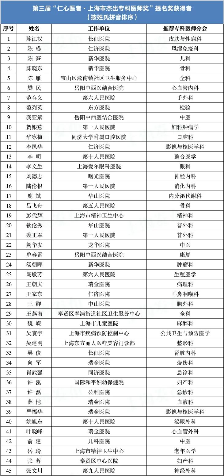 我校附属医院一批医师获“仁心医者·上海市杰出专科医师奖”提名奖及“上...