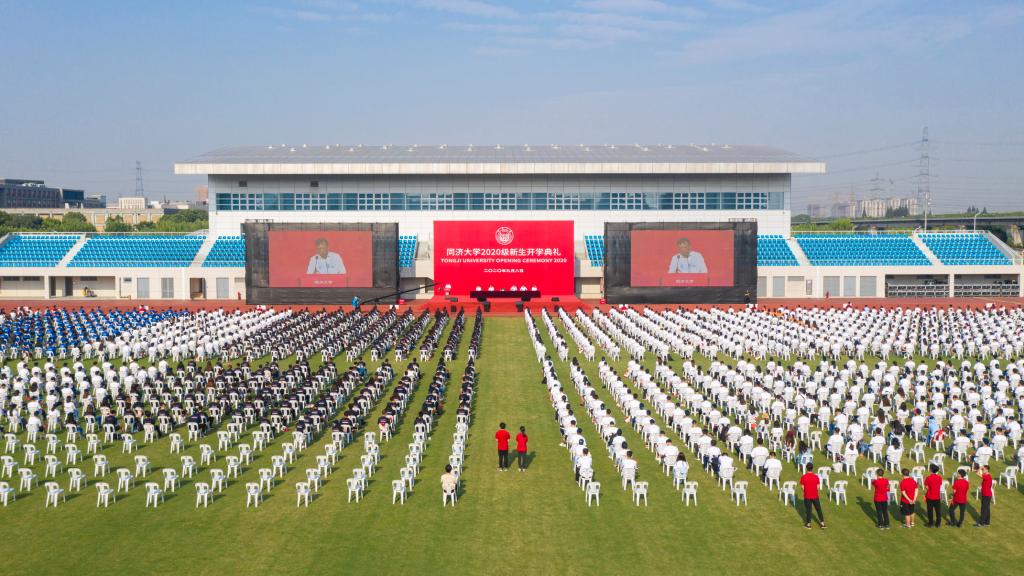 9月8日上午,同济大学2020级新生开学典礼在四平路校区一·二九田径场和嘉定校区操场举行。校领导方守恩、陈杰、伍江、蒋昌俊、徐建平、吕培明、吴广明、顾祥林、方平、冯身洪、雷星晖、陈义汉和教育部直属高校党...