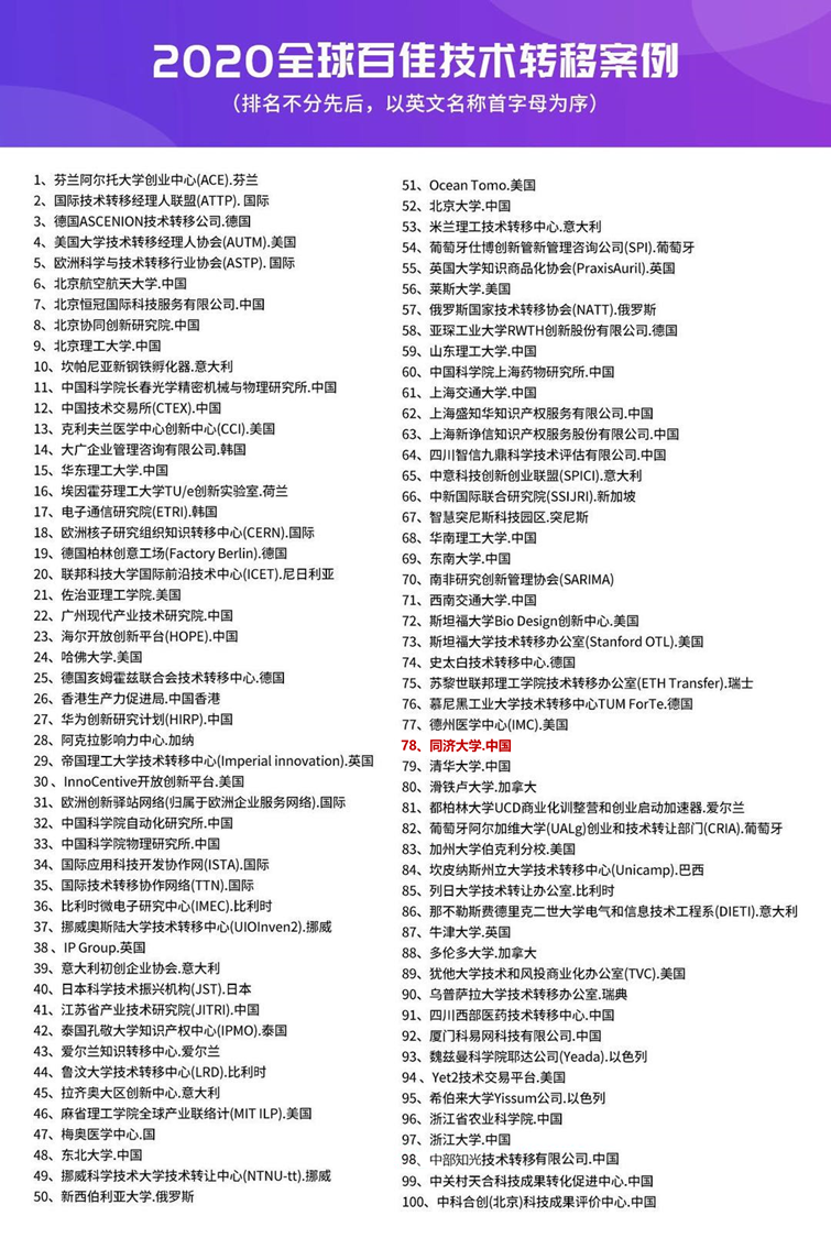 同济大学技术转移中心入选“2020全球百佳技术转移案例”