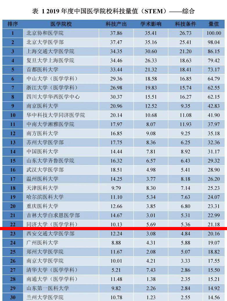由中国医学科学院主办的2019年度中国医院科技量值和2019年度中国医学院校科技量值(STEM)发布会近日在京举行。同济大学(医学学科)位居2019年度中国医学院校科技量值(STEM)综合排行榜第22名。在2019年度中...