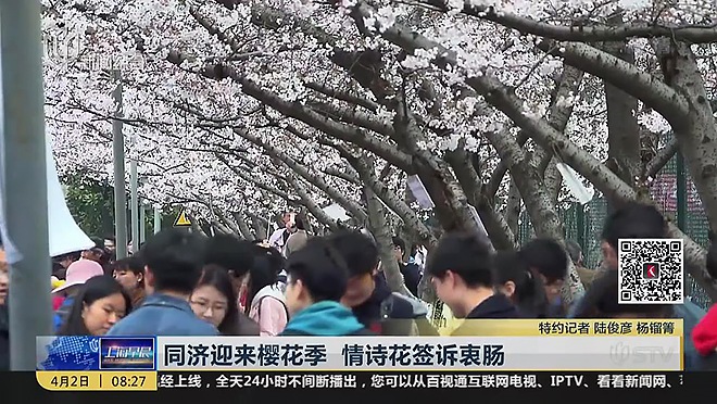 同济迎来樱花季 情诗花签诉衷肠;百米东京樱盛开 同济嘉定一样美