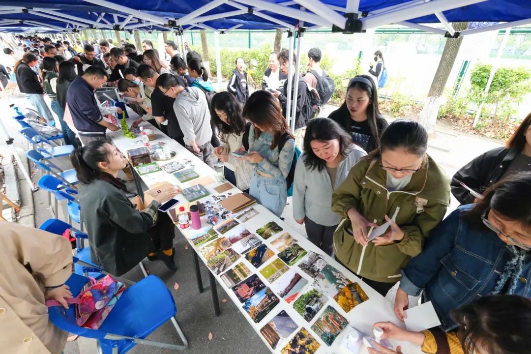 “图书集市”上,德语原版图书、敦煌笔记本等精品文创,“套书圈”“飞花令”等趣味挑战,拼贴诗、二十四节气明信片套印等创意体验,“阅读+互动”,让阅读实感从“静”到“动”,让书香在校园中流动。
